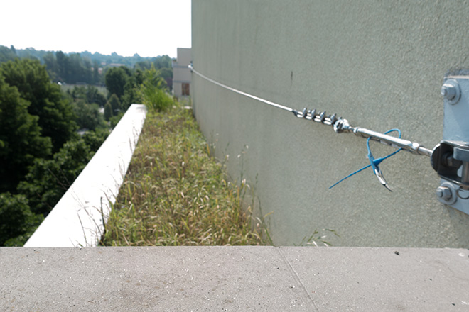 A destra del terrazzo vi è questo “giardino pensile”.0 La catena in primo piano è “salvavita” Chi manutiene l’erba che cresce vi si aggancia.