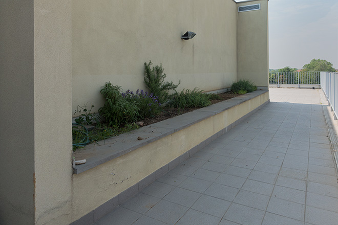 Questo è un passaggio di raccordo del terrazzo, con un fazzoletto di terra