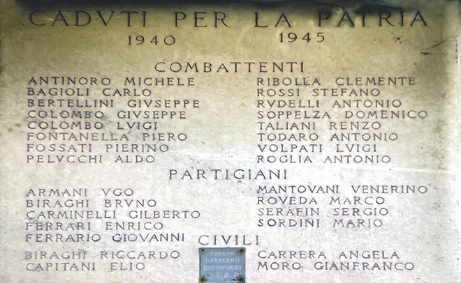 Carminelli Gilberto Bill. Nato a Milano il 18.10.1918. Residente in via Beato Angelico 3. Operaio dell’Olap (fabbrica del gruppo Siemens allora ubicata tra piazza Piola e piazza Leonardo da Vinci). Milita nella 116ª Brigata Garibaldi. A fine novembre ’44 i reparti nazifascisti concentrarono circa 1500 uomini e dettero inizio a un grande rastrellamento nelle valli ad occidente del Lario, con il fine di eliminare le formazioni partigiane presenti su quei monti.
