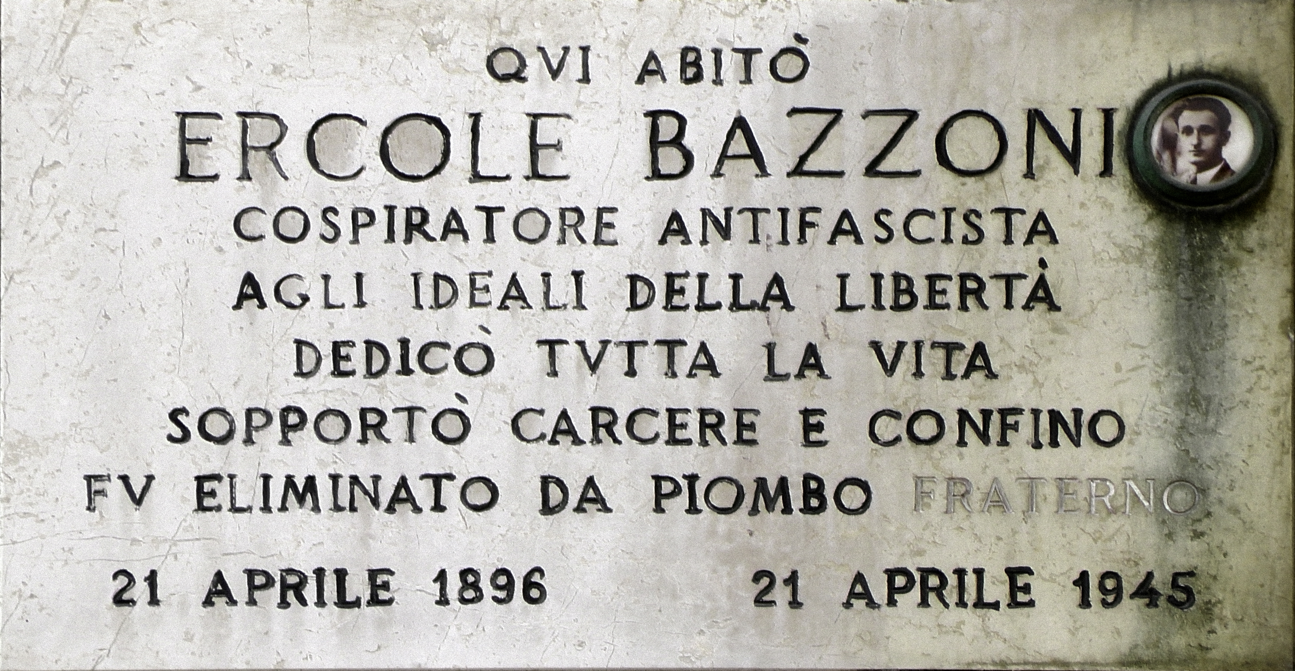 Bazzoni Ercole (Carletto). Nato a Como il 21.4.1896. Meccanico. Apparteneva alla 181a Brigata Garibaldi Morbiducci. Ferito in Valle Bronda il 19.4.1945 durante uno scontro a fuoco “da fuoco fraterno”, muore il 21 dello stesso mese.