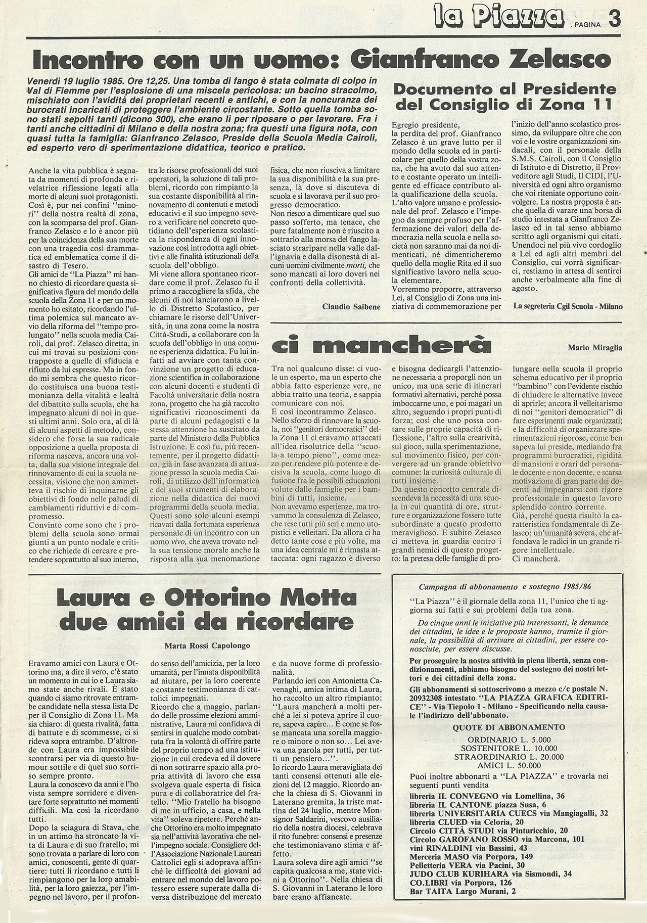 Nel settembre di quell’anno il giornale di Zona 11, la Piazza, così ricordava le loro vite.**