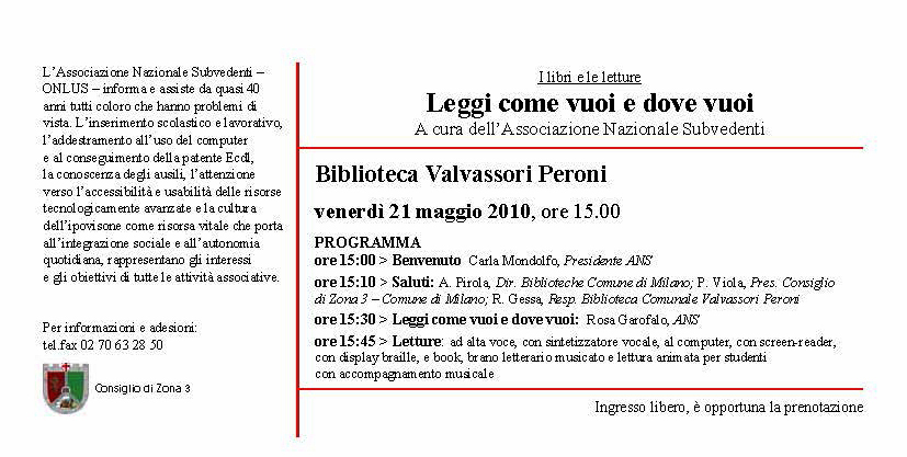21 maggio LEGGI COME VUOI E DOVE VUOI