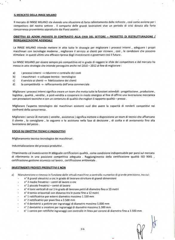 ← luglio PIANO INDUSTRIALE INNSE MILANO SpA 2010-2012
