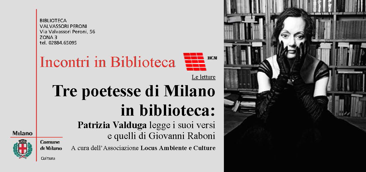 Questa voce è stata pubblicata in Biblioteca Valvassori Peroni, Eventi, Laboratori, Letture e contrassegnata con Associazione Locus Ambiente e cult, GIOVANNI RABONI, PATRIZIA VALDUGA. Contrassegna il permalink.