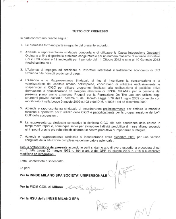 ← 9 ottobre VERBALE DI ACCORDO ALLA INNSE