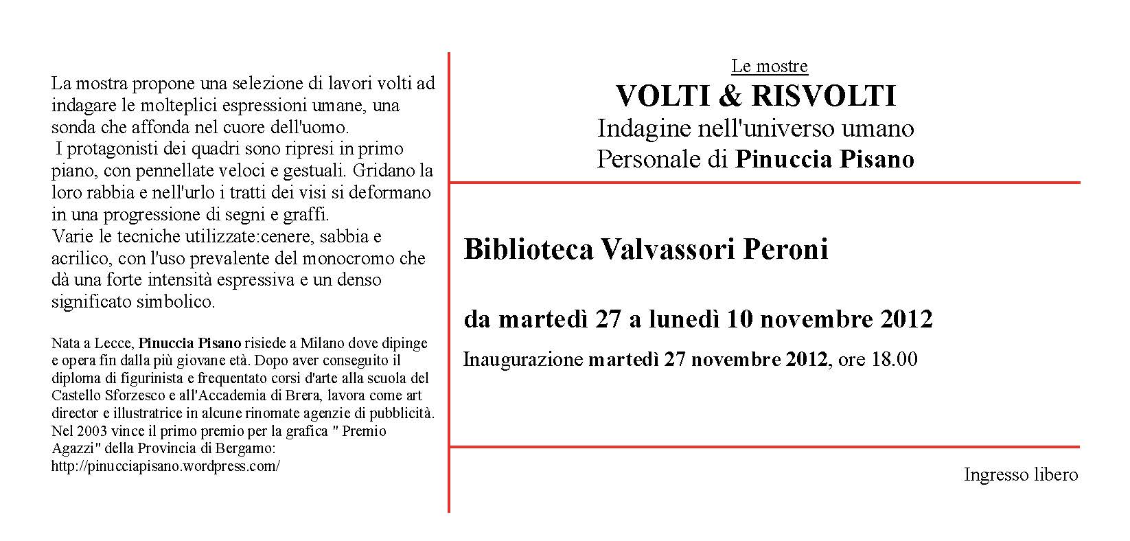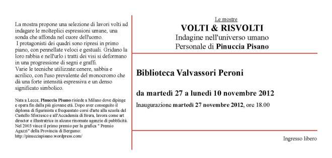 Questa voce è stata pubblicata in Arte, Mostra e contrassegnata con Pinuccia Pisano, VOLTI & RISVOLTI. Contrassegna il permalink.