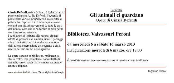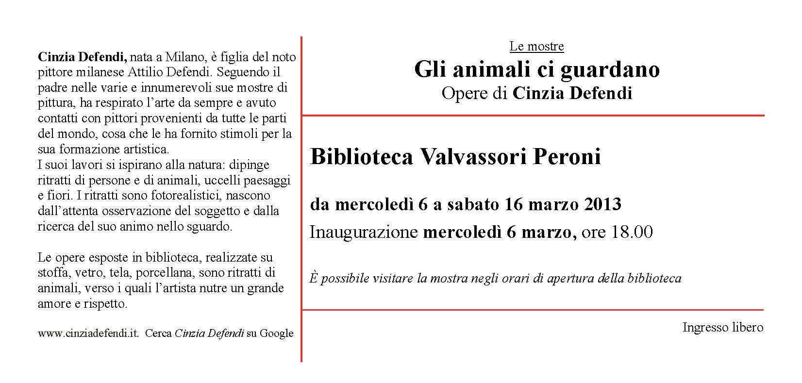 Questa voce è stata pubblicata in Arte, Biblioteca Valvassori Peroni e contrassegnata con Cinzia Defendi. Contrassegna il permalink.