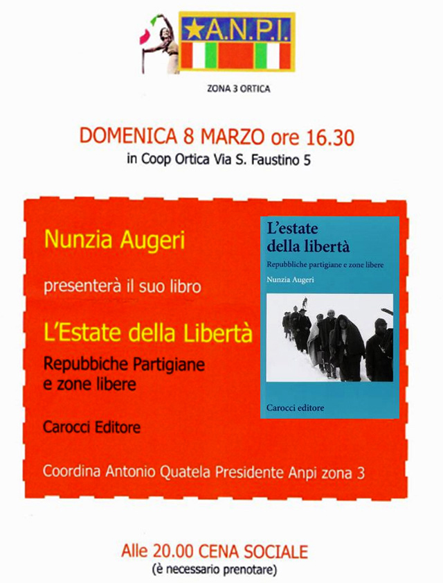 Questa voce è stata pubblicata in Libri, Presentazione e contrassegnata con Anpi Ortica, Carocci editore, Nunzia Augeri. Contrassegna il permalink.