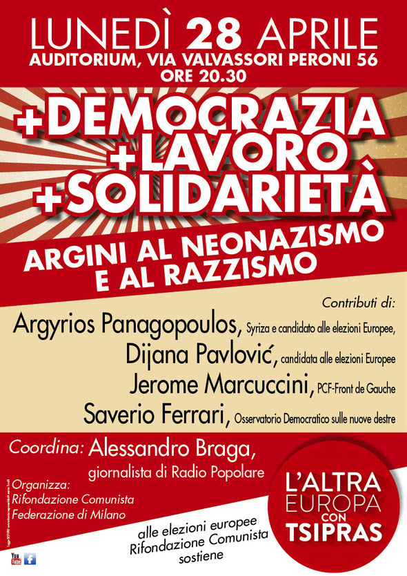 Questa voce è stata pubblicata in Auditorium, Eventi, incontri e contrassegnata con +DEMOCRAZIA+LAVORO+SOLIDARIETA', Alessandro Braga, Argyrios Panagopoulos, Dijana Pavlovic', Jerome Marcuccini, Saverio Ferrari. Contrassegna il permalink.