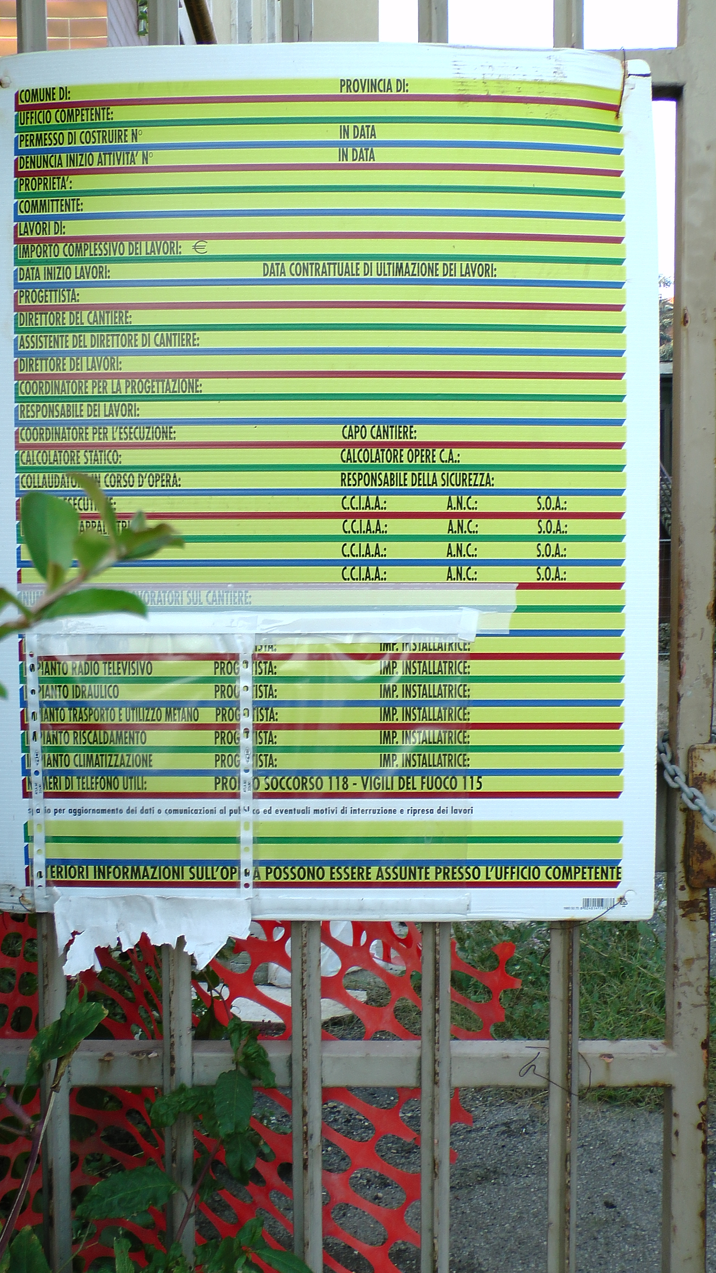 Chi abbia compiuto tutto ciò ora non è più dato di sapere. Il cartello che di norma viene affisso all’esterno di un cantiere appare privo di ogni indicazione
