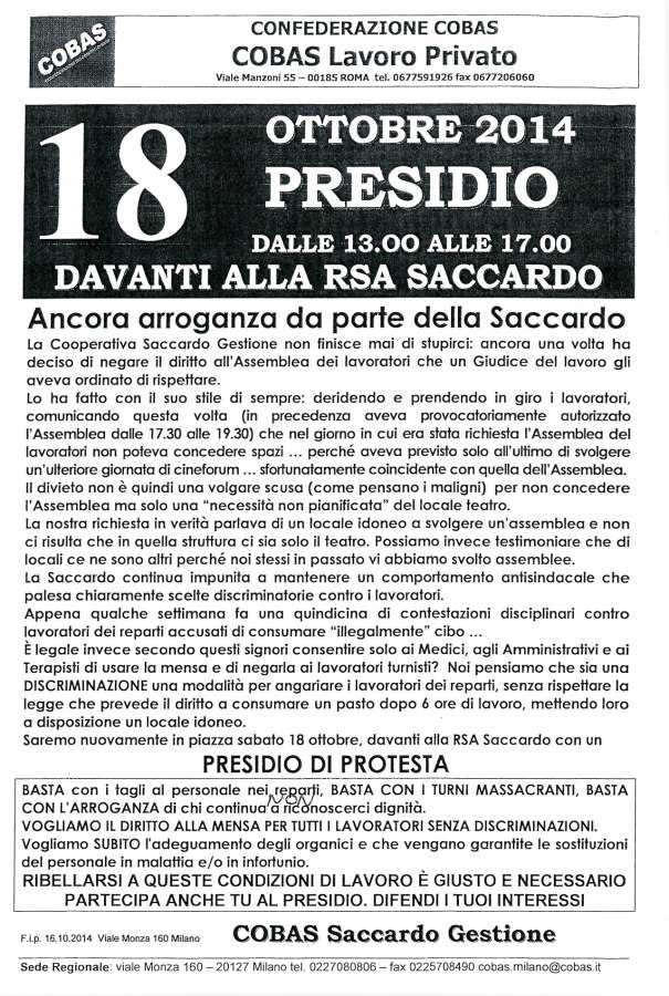← 18 ottobre PRESIDIO DAVANTI ALLA CASA DI RIPOSO E CENTRO ALZHEIMER SACCARDO