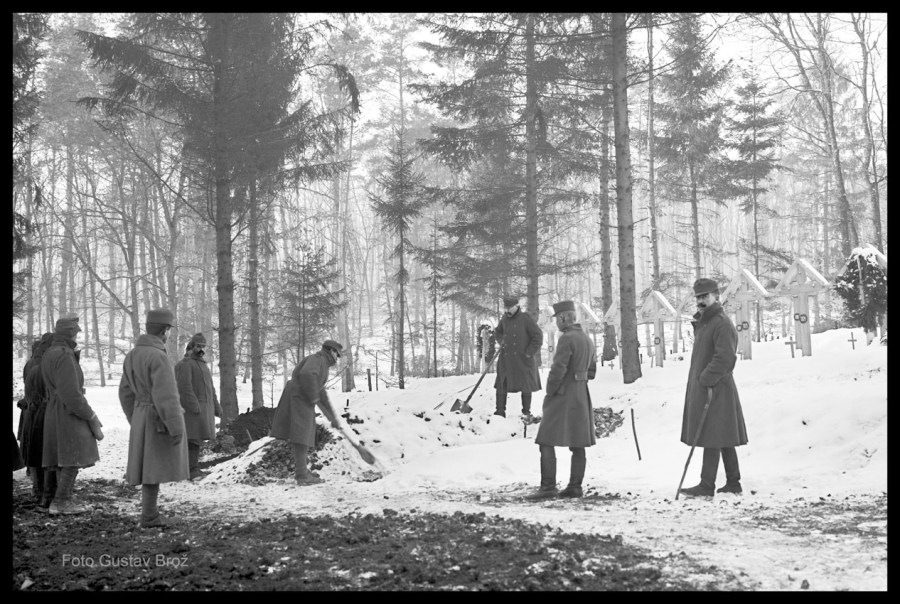 Gustav Brož Si scavano le tombe dei compagni caduti.