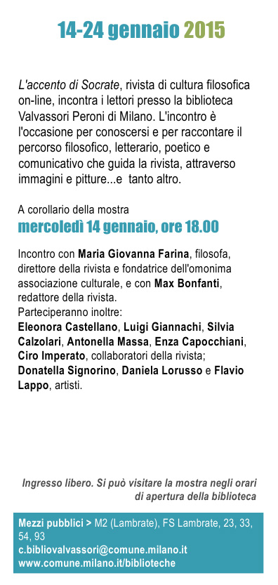 Questa voce è stata pubblicata in Cineforum, Eventi e contrassegnata con Eleonora Castellano, FILOSOFIA PER VIVERE MEGLIO, L'accento di Socrate, Luigi Giannachi, Maria Giovanna Farina, Max Bonfanti, Silvia Calzolari. Contrassegna il permalink.