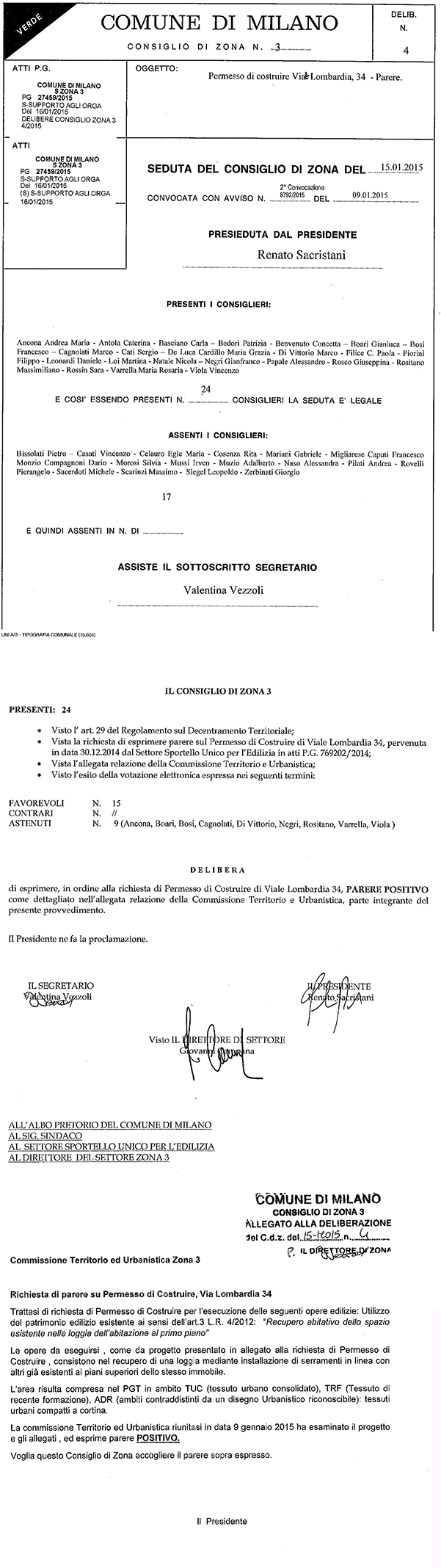 20150115 Delibera n 4 Permesso di costruire in Viale Lombardia 34