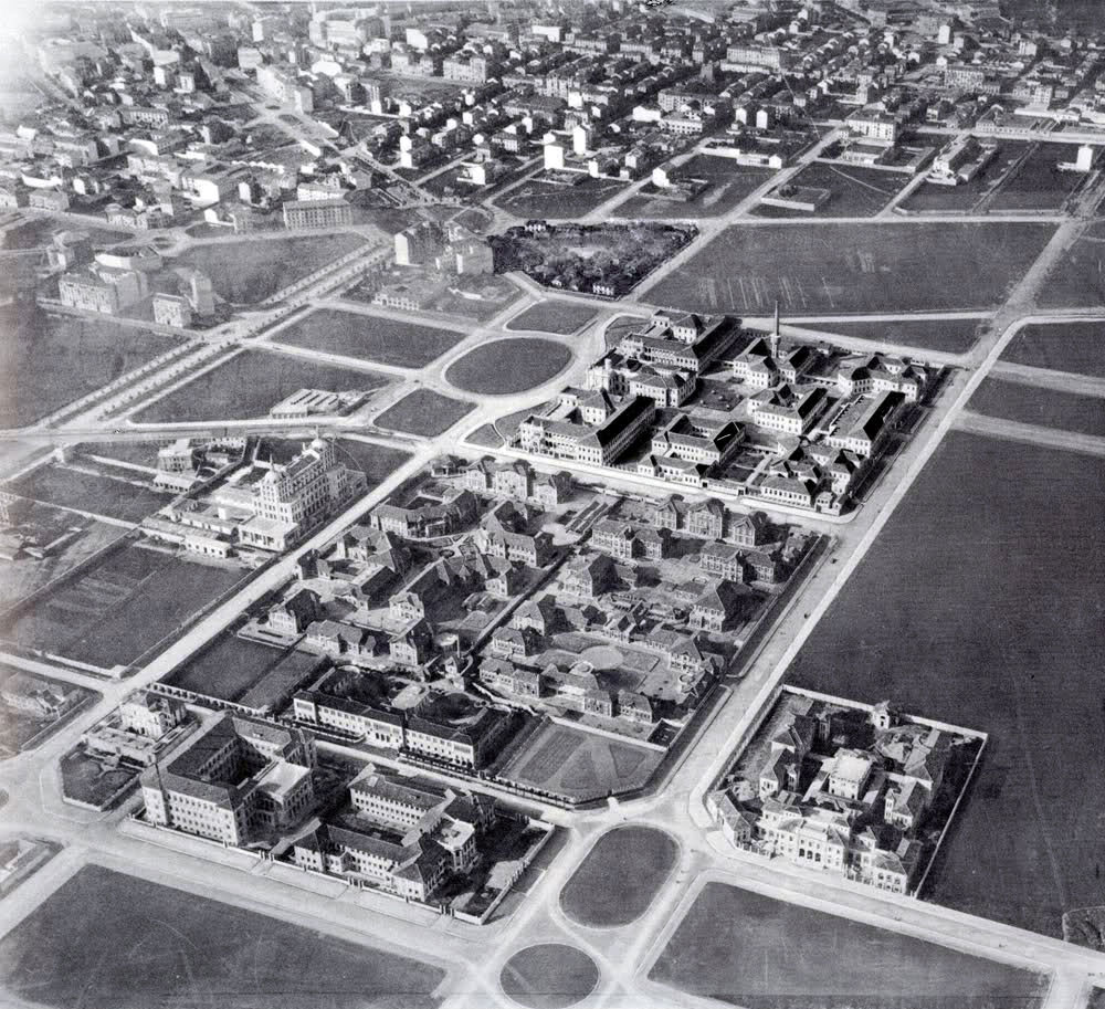 Vista aerea inizio anni ’20: in primo piano p.za Leonardo Da Vinci
