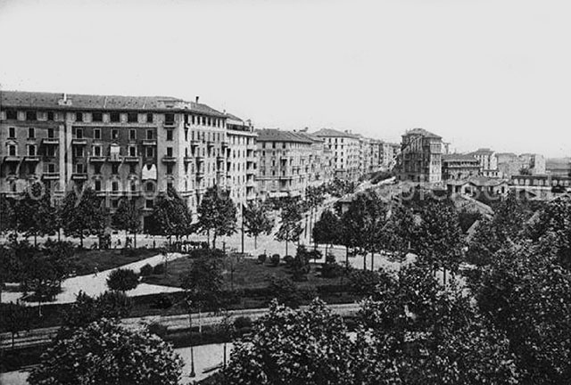 P.za Piola Via Pacini a destra si intravede il quartire Gran Sasso. (verso la fine degli anni ’30)