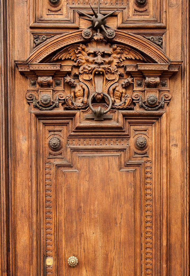 Il palazzo oltre ad avere un portone in legno riccamente scolpito è caratterizzato da un cortile con portico ad archi sostenuti da colonne con capitelli (le colonne del demolito Lazzaretto) presenta 12 medaglioni coi personaggi dei Promessi Sposi.