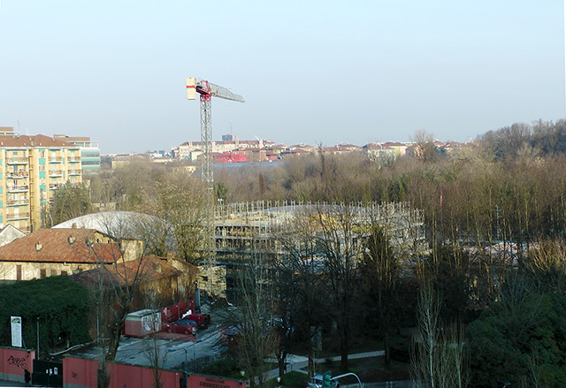 Tennis Club Ambrosiano e costruenda palazzina sulla sinistra coperta d’edera il fienile della cascina Melghera