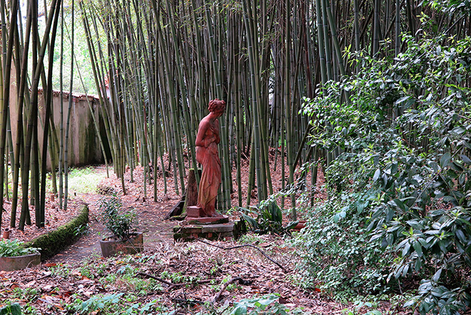 Sulla sinistra di via Giovanni Battista Monteggia vi è una cancellata attraverso la quale è possibile vedere uno scorcio del giardino di villa Carmen – Emilia