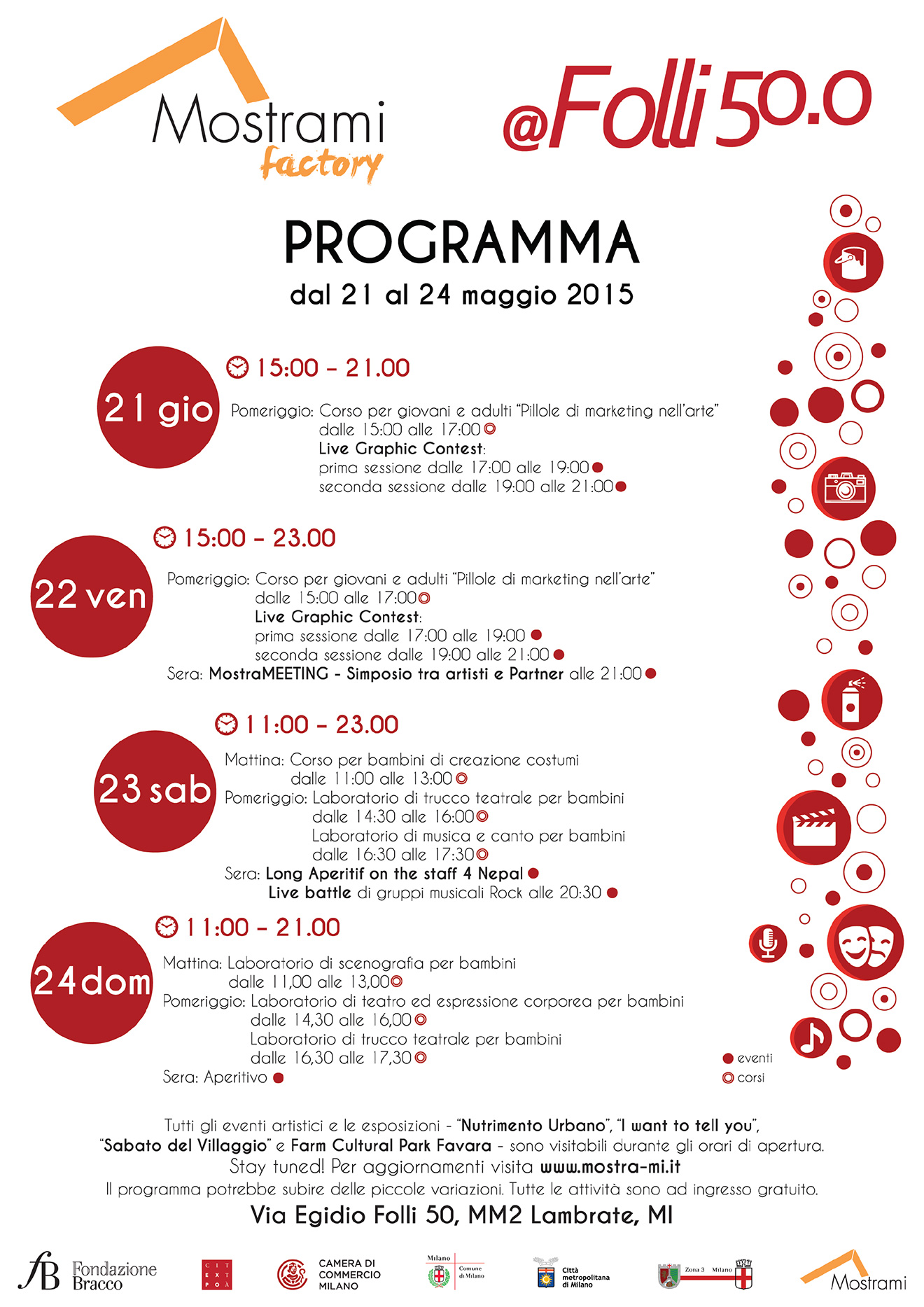 21 – 24 maggio PROGRAMMA di MOSTRAMI FACTORY @FOLLI 50.0