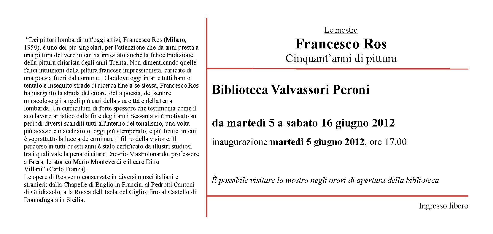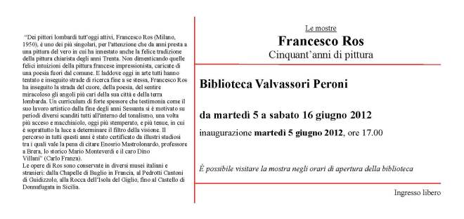 Questa voce è stata pubblicata in Arte, Biblioteca Valvassori Peroni, Mostra e contrassegnata con Francesco Ros. Contrassegna il permalink.