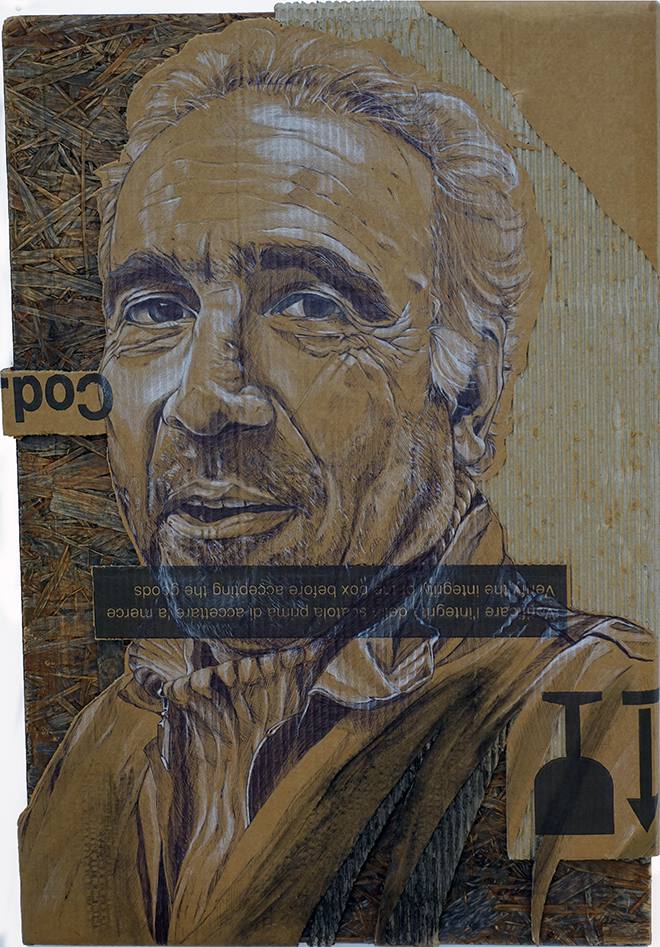 Ricardo Aleodor Venturi “Professore n. 2” Penna e matita bianca su cartone da imballaggio 1000 €