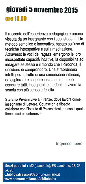 5 ottobre L’INTELLIGENZA INATTESA di Stefano Viviani