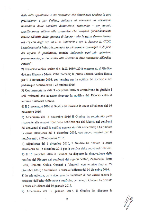 • 20 marzo LA INNSE MILANO SPA E LA COMOZZI INDUSTRIES SPA CONDANNATE A PAGARE UNA RISARCITORIA DI 20 MENSILITA’ A MASSIMO MERLO