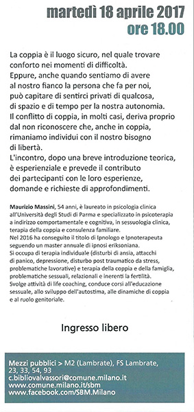 18 aprile CONFLITTO DI COPPIA: tra bisogno di sicurezza e bisogno di libertà