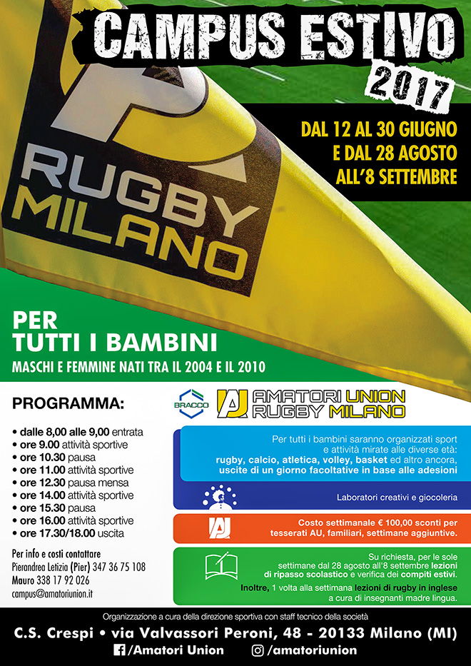 L’Amatori & Union Rugby Milano è nata nel 2015 dalla fusione di due associazioni sportive conosciute nel mondo del rugby milanese: la Amatori Rugby Milano Junior e la Rugby Union 96.