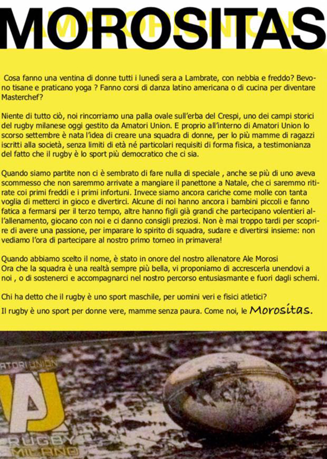 – a settembre del 2016, poichè il ragby è praticato anche dalle donne, si è costituita una squadra femminile.