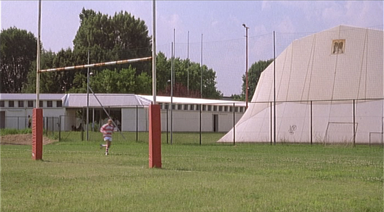Oltre la porta, sullo sfondo, i magazzini del Nuovo Giuriati alias Crespi ora Village Crespi