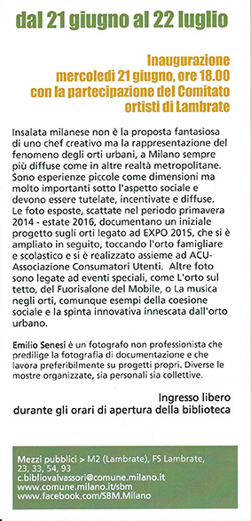 21 giugno – 22 luglio INSALATA MILANESE Uno sguardo sugli orti urbani di Milano