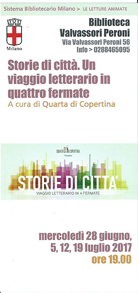 28 giugno – 19 luglio STORIE DI CITTA’. Un viaggio letterario in 4 fermate