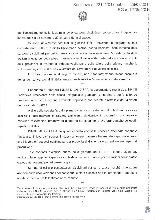 • 20 marzo LA INNSE MILANO SPA E LA COMOZZI INDUSTRIES SPA CONDANNATE A PAGARE UNA RISARCITORIA DI 20 MENSILITA’ A MASSIMO MERLO