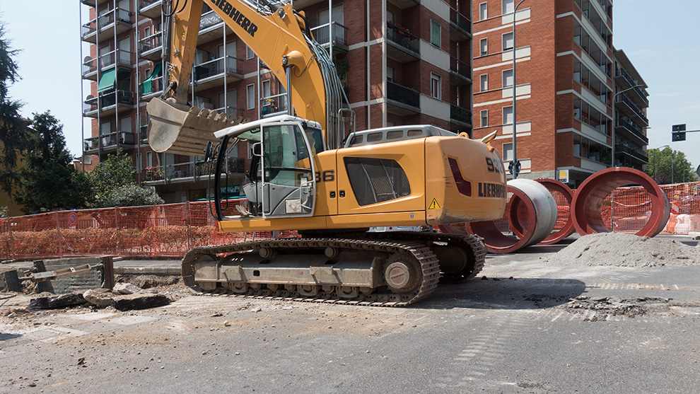 005 via Rombon invasa dal cantiere della fogna lato Lambrate