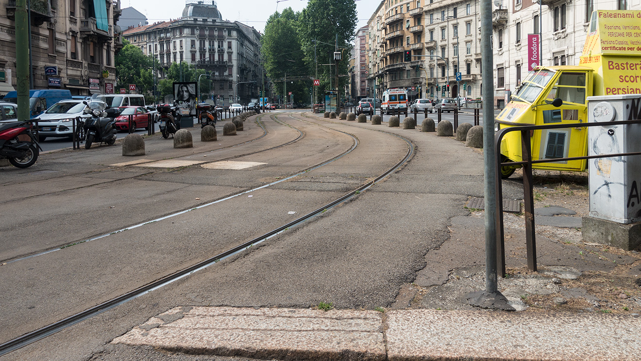 Lo spazio ricavato al posto del mercato per fare passare i tram