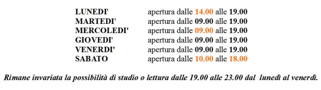 NUOVI ORARI ALLA BIBLIOTECA VALVASSORI PERONI