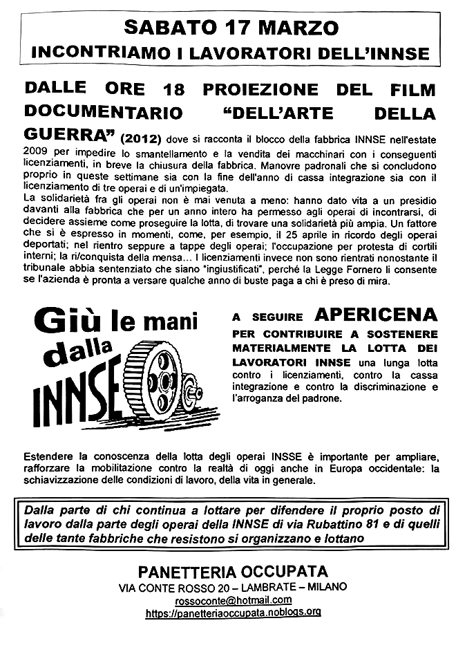 ← 23 febbraio ASSEMBLEA DAVANTI AI CANCELLI DELLA INNSE: VIA RUBATTINO 81 ORE 11.00