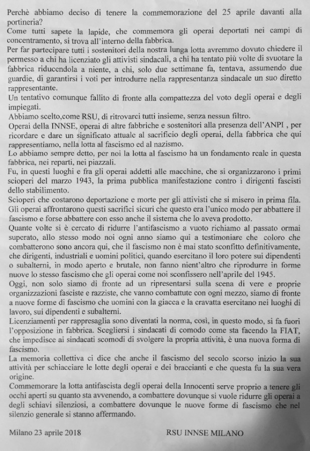 ← 23 aprile COMMEMORAZIONE DEGLI OPERAI INNOCENTI MORTI NEL 1944-45 NEI LAGER NAZISTI