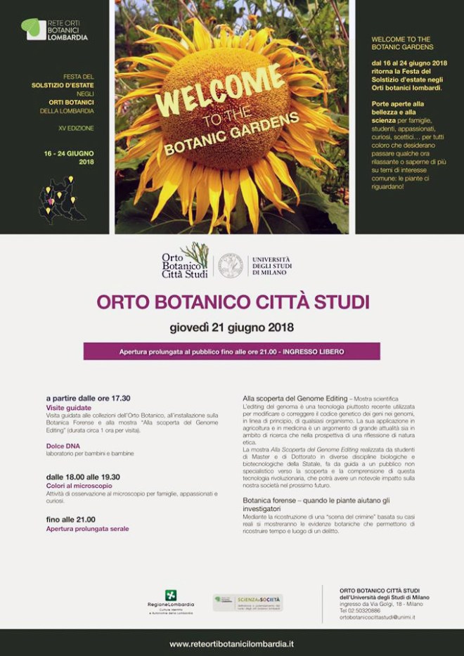 21 giugno BENVENUTI ALL’ORTO BOTANICO DI CITTA’ STUDI