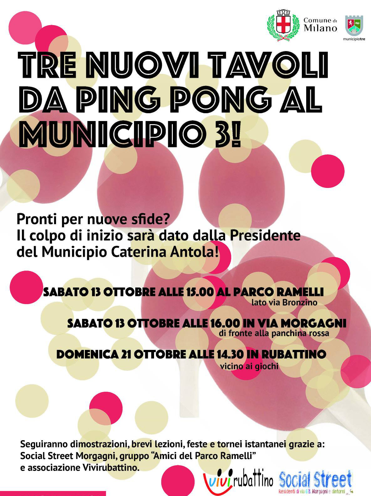 “…mi troverò domani a inaugurare due interventi piccoli e apparentemente insignificanti, fatti dal Municipio, come la posa di due tavoli da ping pong. E ne sono molto contenta. Perché sono l’esito di un percorso di interlocuzione con chi ha espresso dei bisogni per lo spazio pubblico (avere attrezzature per i ragazzini più grandi) ma soprattutto perché sono stati l’occasione per consolidare collaborazioni (con la Social Street Morgagni) e per attivare una nuova rete di cittadini desiderosi di “fare” (con un gruppo di genitori che per ora chiamiamo gli amici del Parco Ramelli) che hanno lavorato in maniera bella e generosa con il Municipio per costruire un momento di festa e di presa in carico di quello spazio anche coinvolgendo i commercianti….” Antonella Bruzzese