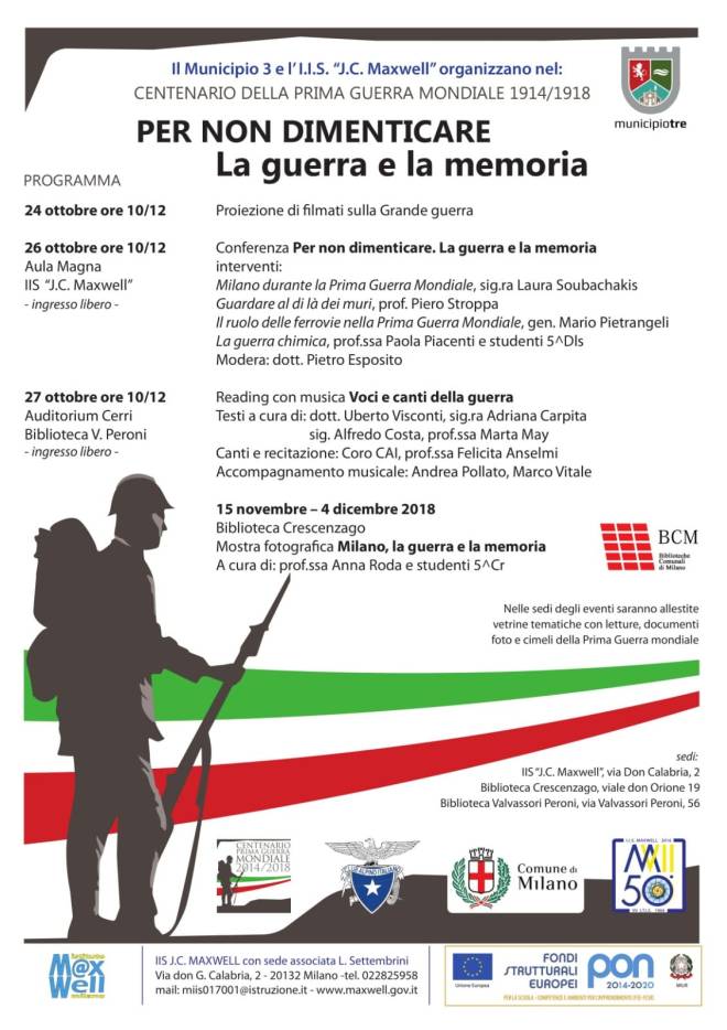 24 – 27 ottobre PER NON DIMENTICARE – LA GUERRA E LA MEMORIA