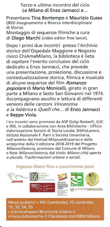 ← 26 ottobre LE MILANO DI JANNACCI, VIOLA E MONICELLI: ROMANZO POPOLARE