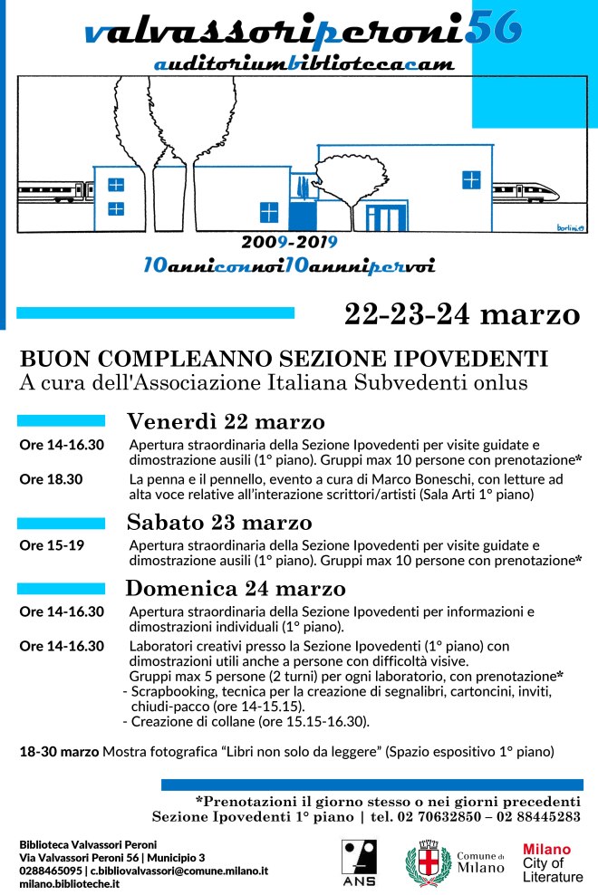 Questa voce è stata pubblicata in Anniversario, ANS, Biblioteca Valvassori Peroni, Eventi, Laboratori e contrassegnata con Associazione Italiana Subvedenti. Contrassegna il permalink.