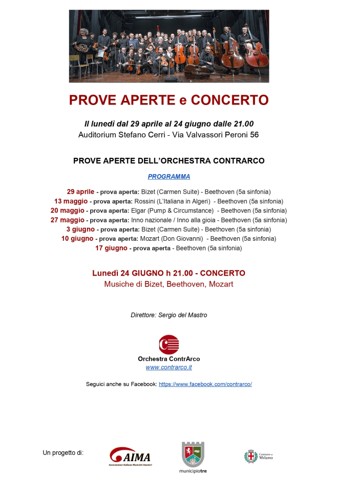 29 aprile – 24 giugno PROVE APERTE E CONCERTO