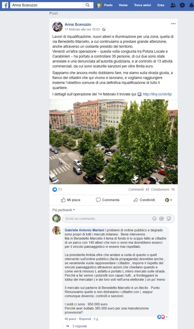 Tre giorni fa Anna Scavuzzo, Vicesindaco e Assessore alla Sicurezza del Comune di Milano. Deleghe: Polizia locale, Protezione civile, politiche giovanili, Food Policy, rapporti con il Consiglio… postava, sulla sua pagina Facebook, una notizia riguardante via Benedetto Marcello – che di seguito riportiamo – la stessa è stata condivisa dal presidente del Municipio 3 Caterina Antola.