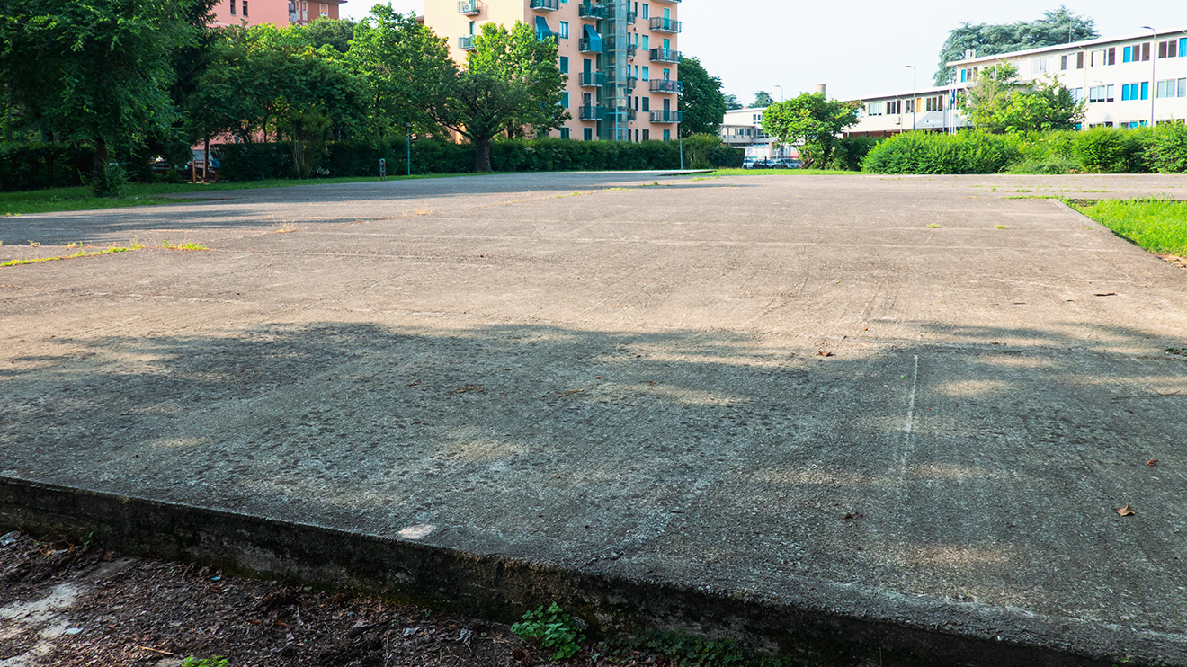 20 giugno 2020 La base su cui sorgeva l’asilo. In fondo vi è il cancello d’ingresso su via Crescenzago.