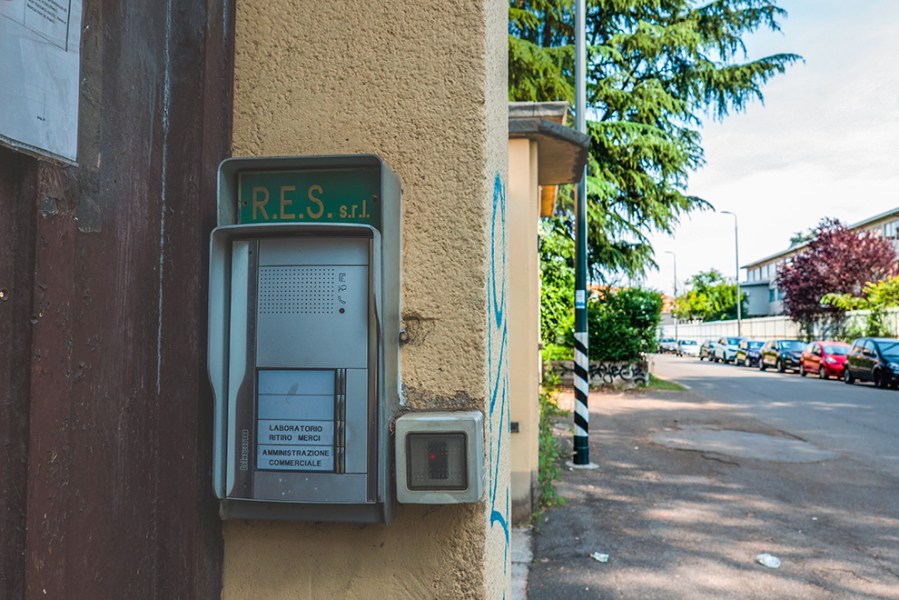 Ma, sorpresa, oltre il cancello scorrevole del civico 105 vi è un altro ingresso che riportata sul citofono che quello è l’ingresso della ditta RES