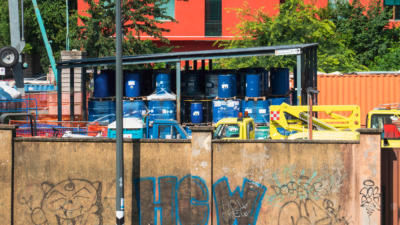 Da lontano su una delle collinette del parco si può vedere il cortile della VisaTransit